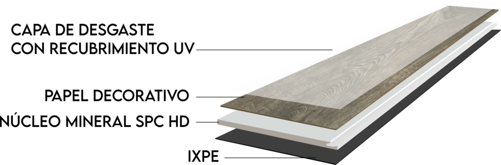 Además de su resistencia, Vettonia también prioriza el confort y la eficiencia. La capa inferior técnica de subsuelo IXPE proporciona un aislamiento acústico y térmico, reduciendo el ruido y mejorando la eficiencia energética de tu hogar o negocio. Con Vettonia, puedes disfrutar de un ambiente más tranquilo y cómodo, mientras ahorras en costos de energía.